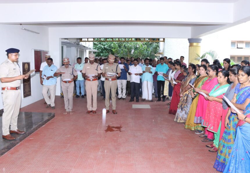 கன்னியாகுமரி மாவட்ட காவல் கண்காணிப்பாளர் சுந்தரவதனம் தலைமையில் மாவட்ட காவல் அலுவலகத்தில் வைத்து இந்திய அரசியலமைப்பு நாள் உறுதிமொழி ஏற்கப்பட்டது.