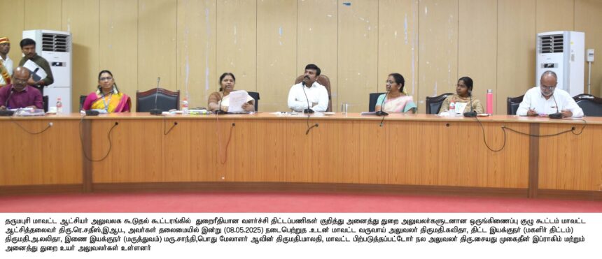 தருமபுரி மாவட்ட ஆட்சியர் அலுவலகத்தில் அனைத்து துறைகளின் சார்பில் அலுவலர்களுடனான ஒருங்கிணைப்பு குழு கூட்டம் மாவட்ட ஆட்சித் தலைவர் சதீஷ் தலைமையில் நடைபெற்றது.