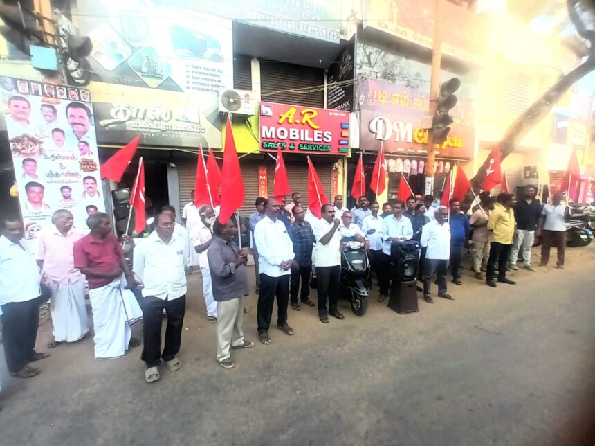 வட்டார செயலாளர் ராஜா தலைமை தாங்கினார். ஆர்ப்பாட்டப் போராட்டத்தை மாவட்ட செயற்குழு உறுப்பினர் கண்ணன் தொடங்கிவைத்து பேசினார். முன்னாள் வட்டார செயலாளர் சாந்தகுமார்,டிஒஎப்ஐ வட்டார செயலாளர் நந்தகுமார், சிஐடியு ஆட்டோசங்க மாவட்ட செயலாளர் சோபனராஜ், கட்டுமான சங்க வட்டார செயலாளர் றசலானந்தராஜ் ஆகியோர் கண்டன உரையாற்றினர்.