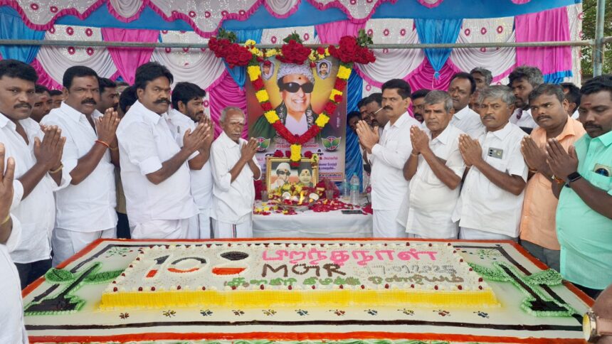 கிருஷ்ணகிரி. ஜன. 18. அனைத்திந்திய அண்ணா திராவிட முன்னேற்றக் கழக பொதுச் செயலாளர் எடப்பாடி பழனிச்சாமி அவர்களின் ஆணைக்கிணங்க, அதிமுக துணை பொதுச் செயலாளரும், வேப்பனப்பள்ளி சட்டமன்ற உறுப்பினருமான கே.பி.முனுசாமி அவர்களின் வழிகாட்டுதலின்படி, கிருஷ்ணகிரி மாவட்டம் சூளகிரி ஒன்றியத்தில் சின்னாறு பேருந்து நிலையத்தில் ஒன்றிய செயலாளர் எல்.செல்வம் தலைமையில், பாரத ரத்னா புரட்சி தலைவர் எம்ஜிஆரின் 108 வது பிறந்த தின விழாவில் 108 கிலோ கேக் வெட்டி சிறப்பாக கொண்டாடப்பட்டது. முன்னதாக எம்ஜிஆர் அவர்களின் திருஉருவப்படத்திற்கு மாலை அணிவித்து மலர் தூவி மரியாதை செய்து புகழஞ்சலி செலுத்தினார்கள். பின்னர் பிரத்தியேகமாக செய்யப்பட்ட 108 கிலோ கேக் வெட்டி அனைவருக்கும் வழங்கப்பட்டது. இந்த நிகழ்ச்சியில் அம்மா பேரவை இணைச் செயலாளர் பெருமாள், மாவட்ட எம்.ஜி.ஆர் மன்ற பொருளாளர் சந்திரப்பன், இளைஞரணி செயலாளர் முருகன், அமைப்புசாரா அணி செயலாளர் ராஜா (எ) ஜெயக்குமார், மாவட்ட மாணவரணி இணைச் செயலாளர் முருகன், ஒன்றிய இலக்கிய அணி தலைவர் சித்தையன், சின்னாறு பகுதியைச் சேர்ந்த மல்லையன், கிருஷ்ணன், மல்லேஷ், நாராயணசாமி, ஆறுமுகம், மாணிக்கம், முனிராஜ், சண்முகம், சங்கர், முனியப்பன், சீனிவாசன், உள்ளிட்ட ஏராளமான கழக நிர்வாகிகளும், சார்பு அணி கழகத் தொண்டர்கள், உட்பட நூற்றுக்கும் மேற்பட்டோர் கலந்து கொண்டனர். மேலும் விழாவில் வருகிற சட்டமன்ற தேர்தலில் புரட்சி தலைவி அம்மா ஆட்சியை, எடப்பாடியாரின் தலைமையில் அமைப்போம் என்று உறுதி மொழி ஏற்றனர்.