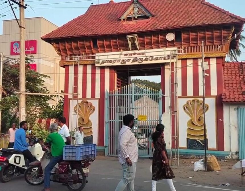 நாகர்கோவிலில் பிரசித்தி பெற்ற நாகராஜா கோவில் உள்ளது. பரிகார ஸ்தலமாக உள்ளதால் இங்கு தினமும் ஏராளமான வெளிமாநில, வெளிமாவட்ட பக்தர்கள் வந்து செல்கிறார்கள். தற்போது சபரிமலை சீசன் என்பதால் இங்கு பக்தர்கள் கூட்டம் அதிகமாக உள்ளது. குறிப்பாக இங்கு ஞாயிற்றுக்கிழமைகளில் பக்தர்கள் கூட்டம் அதிகமாக காணப்படும். அதன்படி நேற்று ஞாயிறு அதிகாலையில் இருந்து பக்தர்களின் வருகை அதிகமாக காணப்பட்டது.