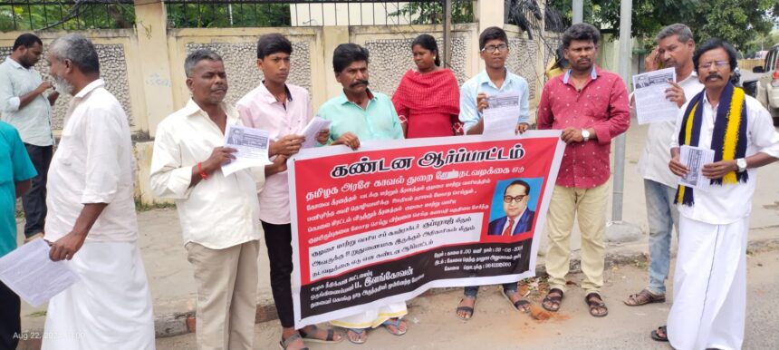இதில் அகில இந்திய அண்ணல் அம்பேத்கர் அனைத்து தொழிலாளர்கள் மற்றும் பட்டியல் இனத்தால் பாதுகாப்பு சங்கத்தின் ஒருங்கிணைப்பாளர் சி எம் வி ரங்கநாதன், மக்கள் ஆயுதம் ஆசிரியர் பி சி கண்ணன் கோவை பாலு சங்க நிர்வாகிகள் மற்றும் பொதுமக்கள் ஆர்ப்பாட்டத்தில் கலந்து கொண்டனர்.கலந்து கொண்டனர்.