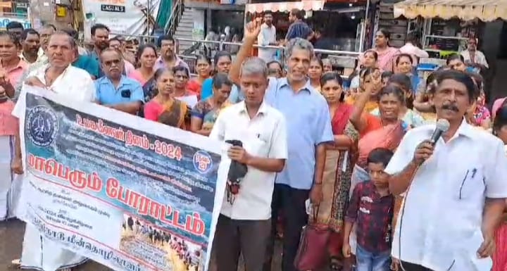 இப்போராட்டத்துக்கு தமிழ்நாடு மீன் தொழிலாளர் யூனியன் தலைவர் பீட்டர்தாஸ் தலைமை தாங்கினார். மாவட்ட நிர்வாகிகள் மங்களமேரி, மெஷோ ஆகியோர் முன்னிலை வகித்தனர். கடலோர மக்கள் வளர்ச்சி மன்றத்தின் சார்பில் பங்கேற்ற நெல்சன் கோரிக்கைகளை விளக்கி பேசினார்.