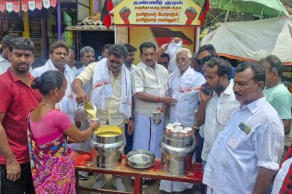 திமுக சார்பில் தண்ணீர், பாதாம் பால், நீர்மோர் வழங்கினர்