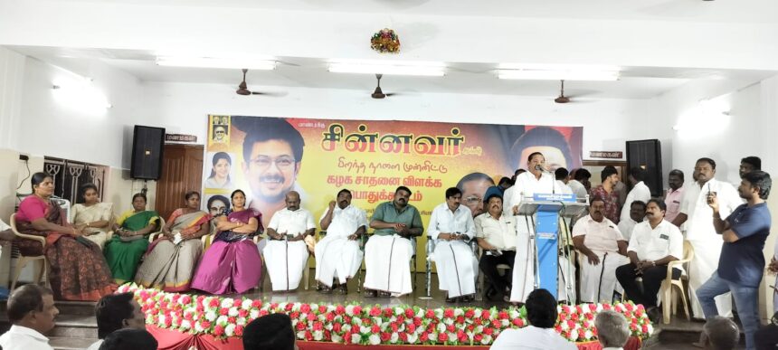 தென்காசி வடக்கு மாவட்டம் சங்கரன்கோவில் நகரத்தில் மேலரத வீதியில் உள்ள தனியார் திருமண மண்டபத்தில் வைத்து தமிழ்நாடு துணை முதலமைச்சர் உதயநிதி ஸ்டாலின் பிறந்தநாள் விழா பொதுக்கூட்டம் நடந்தது கூட்டத்தில் சிறப்பு அழைப்பாளராக திமுக அமைப்புச் செயலாளர் ஆர் எஸ் பாரதி திமுக சட்டத்துறை துணைச் செயலாளர் சூர்யா வெற்றி கொண்டான், ஆகியோர் கலந்து கொண்டு பேசினார்கள் கூட்டத்திற்கு வடக்கு மாவட்ட செயலாளர் ராஜா எம்எல்ஏ தலைமை வகித்தார். தலைமை செயற்குழு உறுப்பினர்கள் முன்னாள் அமைச்சர் தங்கவேலு, பரமகுரு, யூஎஸ்டி சீனிவாசன், மாவட்ட மாநில மருத்துவர் அணி துணை அமைப்பாளர் டாக்டர் செண்பக விநாயகம், மாநில வர்த்தக அணி இணைச் செயலாளர் முத்துச்செல்வி, மாவட்ட அவைத் தலைவர் பத்மநாபன், மாவட்ட பொருளாளர் சரவணன், மாவட்ட துணை செயலாளர்கள் புனிதா, ராஜதுரை, மனோகரன் முன்னிலை வகித்தனர் நகர செயலாளர் பிரகாஷ் வரவேற்றார். நகர இளைஞர் அணி வீராச்சாமி தொகுத்து வழங்கினார்