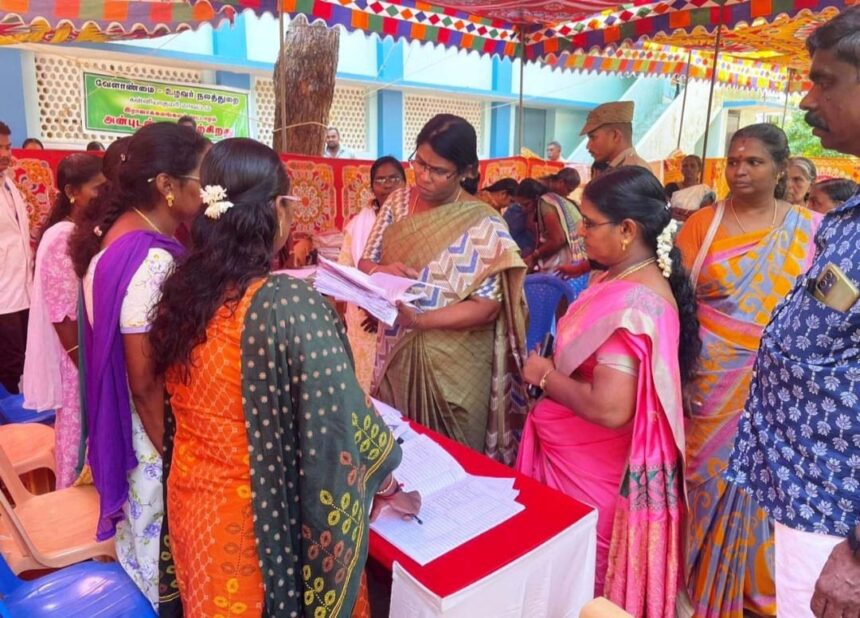 கன்னியாகுமரி மாவட்டம் இராஜாக்கமங்கலம் மற்றும் குருந்தன்கோடு ஊராட்சி ஒன்றியத்திற்குட்பட்ட எள்ளுவிளை. கேசவன்புத்தன்துறை, சைமன் காலனி, குருந்தன்கோடு ஆகிய நான்கு ஊராட்சிகளுக்கான மக்களுடன் முதல்வர் திட்ட முகாம் நேற்று எள்ளுவிளை சமூகநலக்கூடத்தில் நடைபெற்றது. இம்முகாமினை மாவட்ட ஆட்சித்தலைவர் அழகுமீனா. நேரில் பார்வையிட்டு ஆய்வு மேற்கொண்டு, தெரிவிக்கையில்:-