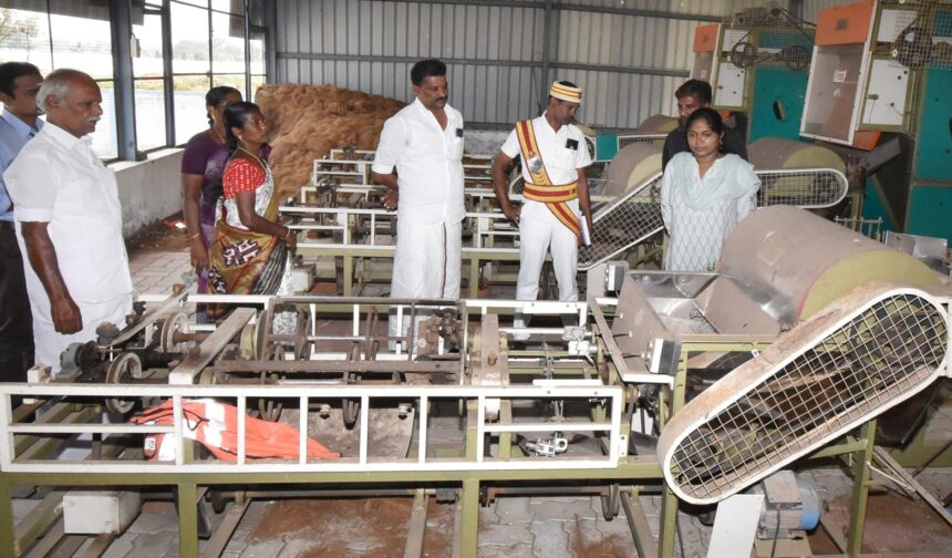 தமிழ்நாடு முதலமைச்சர் உத்தரவுக்கிணங்க தஞ்சாவூர் மாவட்டத்தில் பல்வேறு வளர்ச்சி திட்ட பணிகளானதஞ்சாவூர் அருகே திருக்கானூர் பட்டி ஊராட்சி திருமலை சமுத்திரத்தில் ஊரக வளர்ச்சித் துறை மற்றும் தமிழ்நாடு மாநில ஊரக வாழ்வாதார இயக்கம் சார்பில் தென்னை நார்கழிவு பஞ்சு தயாரித்தல் அழகு, திருமலை சமுத்திரம் தொகுப்பில் கோழி கொட்டகை ,மசாலாத்தூள் தயாரித்தல் அழகு, மக்காச்சோளம், திணை மதிப்பு கூட்டுதல் அழகு, பைகள் தைக்கும் இடமிடமும், இனத்துக்கான் பட்டி ஊராட்சியில் ஹாலேபிளாக் கற்கள் செய்யும் முறை குறித்து நேரில் பார்வை யிட்டு ஆய்வு செய்தார்
