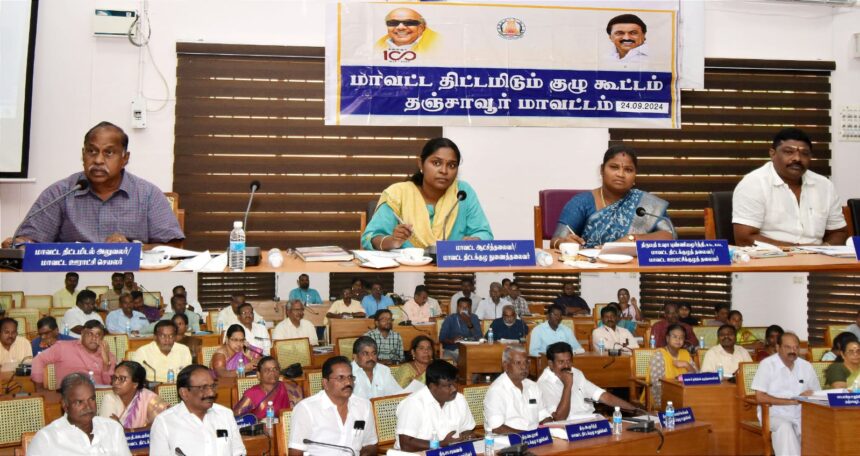 தஞ்சாவூர் மாவட்ட ஆட்சித் தலைவர் அலுவலக கூட்டரங்கில் மாவட்ட திட்டக்குழு கூட்டம் மாவட்ட ஆட்சித் தலைவர் பிரியங்கா பங்கஜம் முன்னிலையில் மாவட்ட ஊராட்சி குழு தலைவர் உஷா புண்ணியமூர்த்தி தலைமையில் நடைபெற்றது.