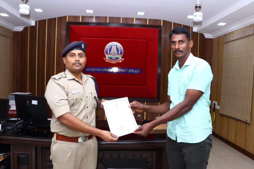 குற்றவாளிகளை விரைந்து கைது செய்வதில் முக்கிய பங்காற்றிய கன்னியாகுமரி உட்கோட்ட துணை காவல் கண்காணிப்பாளர் மகேஷ் குமார், சுசீந்திரம் காவல் ஆய்வாளர் ஆதம் அலி மற்றும் உதவி ஆய்வாளர்கள் மோகன ஐயர், ஆறுமுகம், ரகு பாலாஜி, மற்றும் தனிப்படை போலீசாரை மாவட்ட காவல் கண்காணிப்பாளர் வெகுவாக பாராட்டி சான்றிதழ் மற்றும் பண வெகுமதி வழங்கினார்.