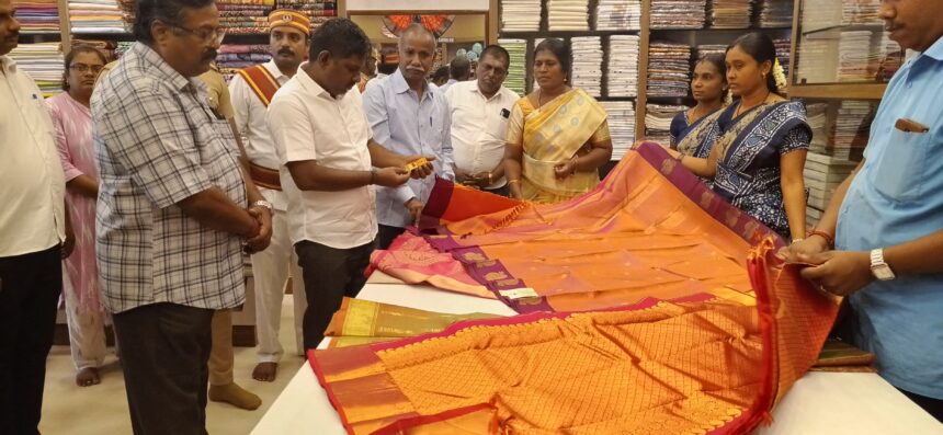தமிழக அரசின் கூட்டறவு நிறுவனமான கோ ஆப் டெக்ஸ் கடந்த 80 ஆண்டுகளாக தமிழகத்தின் பல்வேறு பகுதிகளில் தமிழக நெசவாளர்கள் உற்பத்தி செய்யும் இரகங்களை கொள்முதல் செய்து இந்தியா முழுவதும் உள்ள கோ ஆப் டெக்ஸ் நிலையங்கள் மூலமாக சந்தைப்படுத்தி நெசவாளர்களுக்கு பெரும் உதவி புரிந்து வருகிறது அதன் ஒரு பகுதியாக திருப்பூர் புஷ்பா தியேட்டர் கல்லூரி சாலையில் உள்ள குமரன் கோ ஆப் டெக்ஸ் நிறுவனத்தில் தீபாவளி 2024 ம் ஆண்டிற்க்கான சிறப்பு தள்ளுபடி விற்பனையை மாவட்ட ஆட்சியர். கிறிஸ்துராஜ்.குத்துவிளக்கு ஏற்றி முதல் விற்பனையை துவக்கி வைத்தார்.இந்த கோ ஆப் டெக்ஸ் நிறுவனத்தில் கடந்த ஆண்டு 60 ரூபாய் விற்பனை செய்துள்ளதாகவும் இந்த நடப்பு ஆண்டில் சுமார் 80 இலட்சம் இலக்கு வைத்து விற்பனை துவங்கி உள்ளதாகவும். மேலும் பொது மக்களுக்கான சிறப்பு சிறுசேமிப்பு திட்டம் அறிமுகப்படுத்த பட்டுள்ளது.இந்த தள்ளுபடி விற்பனையானது 15-09-2024 முதல் 30-01-2015 வரை நடைமுறை படுத்தப்பட்டு அணைத்து ரகங்களுக்கு 30 சதவிகித தள்ளுபடி விற்பனையும் செய்யப்படுகிறது.இந்த நிகழ்ச்சியில் ஏரளாமானோர் கலந்து கொண்டனர்.