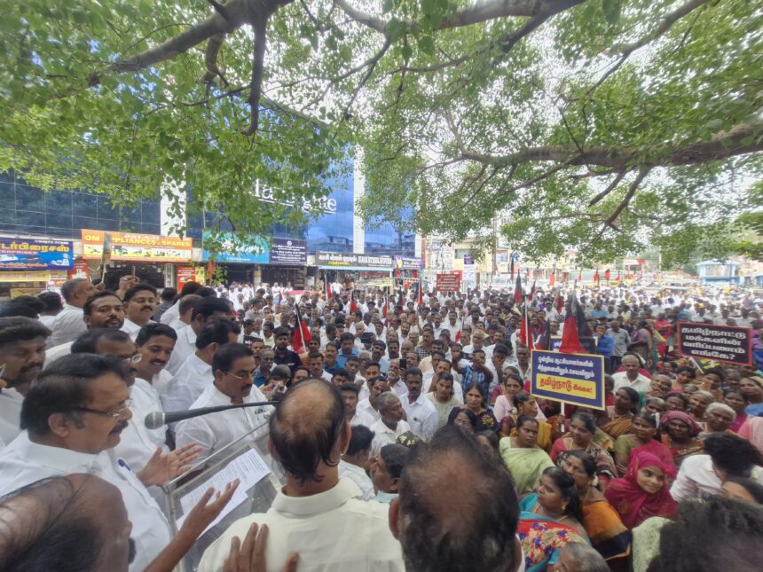 இந்த ஆர்ப்பாட்டத்தில் மாவட்ட பொருளாளர் பேஷன் தலைமை செயற்குழு உறுப்பினர்கள் தாமரை பாரதி சதாசிவம் பார்த்தசாரதி அறங்காவலர் குழு தலைவர் பிரபாகர ராமகிருஷ்ணன் முந்திய செயலாளர் மதியழகன் பிராங்க்ளின் சுரேந்திர குமார் தொல்லை செல்வம் முன்னாள் எம்எல்ஏ ராஜன் மற்றும் ஆரல்வாய்மொழி தொமுச தொழிற்சங்கம் ஓ பி ற்றி கலைச்செல்வன் உட்பட நிர்வாகிகள் ஏராளமானோர் கலந்து கொண்டனர்.