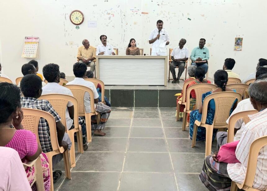 விளாத்திகுளம் ஊராட்சி ஒன்றியம், கே.சுந்தரேஸ்வரபுரம் ஊராட்சியில் கலைஞரின் கனவு இல்லம் திட்டத்தில் 2025-2026 (மாற்றுத்திறனாளிகள் மற்றும் திருநங்கைகள்) 110- பயனாளிகளுக்கு இலவச வீடு கட்டும் ஆயத்த பணிகளை மேற்கொள்ளுவது குறித்து விளாத்திகுளம் ஊராட்சி ஒன்றிய அலுவலகத்தில் நடைபெற்ற ஆலோசனைக் கூட்டத்தில் விளாத்திகுளம் சட்டமன்ற உறுப்பினர் G.V.மார்கண்டேயன் , தூத்துக்குடி கூடுதல் ஆட்சியர் (வளர்ச்சி) ஐஸ்வர்யா கலந்து கொண்டு ஆலோசனை வழங்கினார்கள்.
