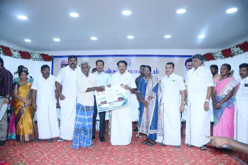 தென்காசி மாவட்டம் சங்கரன்கோவில் வட்டத்திற்குட்பட்ட கரிவலம்வந்தநல்லூர் நற்பவி அரங்கம், தென்காசி இ.சி.ஈ.அரசு ஆண்கள் மேல்நிலைப்பள்ளி கூட்டரங்கம் மற்றும் ஆலங்குளம் ஊராட்சி ஒன்றிய கூட்டரங்கம் ஆகிய இடங்களில் ஊரக வளர்ச்சித் துறையின் மூலம் கலைஞரின் கனவு இல்லத்திட்டம் மற்றும் ஊரக வீடுகள் பழுது பார்க்கும் திட்டத்தின் கீழ் பணி ஆணைகளை பயனாளிகளுக்கு மாவட்ட ஆட்சித்தலைவர் கமல்கிஷோர், தென்காசி நாடாளுமன்ற உறுப்பினர் மரு.ராணிஸ்ரீகுமார் , சங்கரன்கோவில் சட்டமன்ற உறுப்பினர் ராஜா , தென்காசி சட்டமன்ற உறுப்பினர் பழனிநாடார் ஆகியோர் முன்னிலையில் வருவாய் மற்றும் பேரிடர் மேலாண்மைத்துறை அமைச்சர் கே.கே.எஸ்.எஸ்.ஆர்.ராமச்சந்திரன் வழங்கினார்கள்.