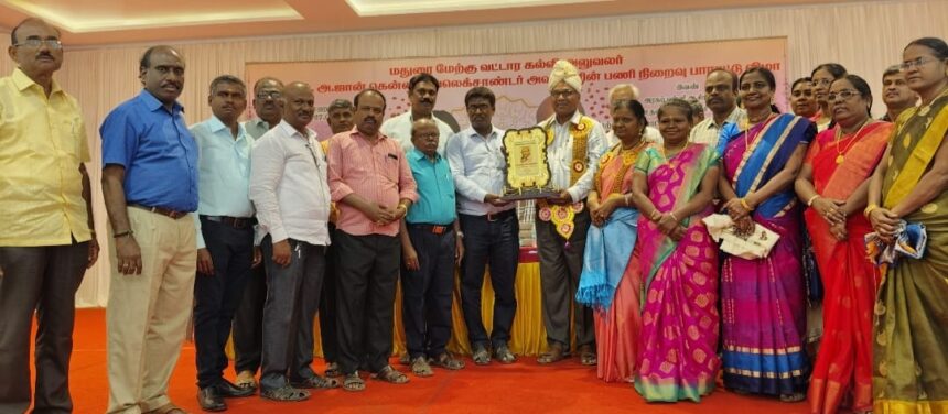 குலமங்கலம் மெயின் ரோட்டில் அமைந்துள்ள ஸ்ரீராம் மஹாலில் 27.07.2024 நேற்று சனிக்கிழமை காலை 10.00 மணியளவில் மதுரை மேற்கு வட்டார கல்வி அலுவலர் முனைவர்.அ.ஜான் கென்னடி அலெக்சாண்டர் அவர்களின் பணி நிறைவு பாராட்டு விழா மதுரை மாவட்டக் தொடக்க கல்வி அலுவலர் திரு.கு.சுப்பாராஜு அவர்கள் தலைமையில் நடைபெற்றது. மதுரை உதவித் திட்ட அலுவலர்