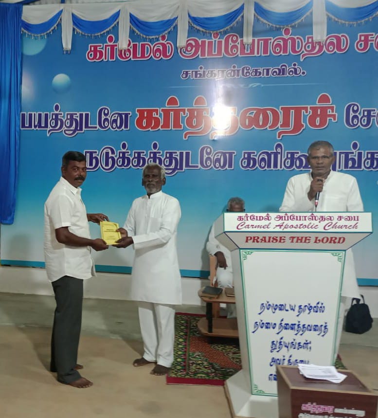 சங்கரன்கோவில் இலவன் குளம் சாலை கர்மேல் அப்போஸ்தல சபைகளின் தலைமை போதகர் அப்போஸ்தலன் எல் கோபால் ஜான் எழுதிய அழைப்பும் ஊழியப்பாதையும் என்ற நூல் வெளியீட்டு விழா நடைபெற்றது நூலினை போதகர் ஜார்ஜ் வெளியிட மூத்த வழக்கறிஞர் தூத்துக்குடி மங்கள் ராஜ் பெற்றுக்கொண்டார் நிகழ்ச்சியில் எல் கோபால் ஜான் உரையாற்றினார் ஏற்பாடுகளை தல போதகர் பி ஜான் வெஸ்லி மற்றும் சபை உறுப்பினர்கள் சிறப்பாக செய்திருந்தனர்.