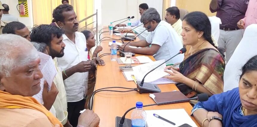 காஞ்சிபுரம் மாவட்டம் மாவட்ட ஆட்சியர் அலுவலகத்தில் மாவட்ட ஆட்சியர் கலைசெல்வி மோகனிடம் மக்கள் குறைதீர்க்கும் நாள் கூட்டத்தில் வெங்காடு கிராமத்தைச் சேர்ந்த ஓஎச்டி ஆப்ரேட்டர் வரதராஜ் கோரிக்கை மனு ஒன்றை மனு அளித்தார்.