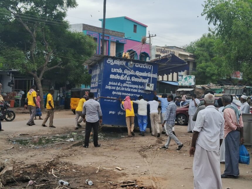 தடை செய்யப்பட்ட பகுதிகளில் பழக்கடை வளையல் கடை அல்வா கடைகள் இருந்தன இந்த கடைகளுக்கு ஒரு சிலர் மறைமுகமாக 30ஆயிரம் முதல் 50 ஆயிரம் வரை அட்வான்ஸ் ஆக பெற்றுக்கொண்டு தினசரி 300 முதல் 500 வரை வசூல் செய்து வந்தனர் இது சம்பந்தமாக மாவட்ட ஆட்சித் தலைவருக்கு புகார்கள் வந்ததன் அடிப்படையில் கீழக்கரை வட்டாட்சியர் பழனிக்குமார் தலைமையில் தடை செய்யப்பட்ட சர்வே எண் 502 504 நேற்று ஆக்கிரமிப்பு செய்திருந்த கடைகளை அகற்றினார் மண்டல துணை வட்டாட்சியர் பரமசிவம் கீழக்கரை நில அளவை ஆய்வாளர் வினோத் குமார்