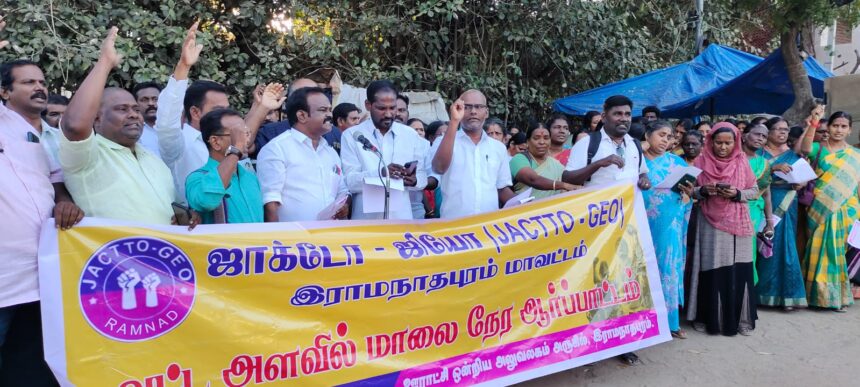ஜாக்டோ ஜியோ ராமநாதபுரம் மாவட்ட அமைப்பு சார்பில் 10 அம்ச கோரிக்கை வலியுறுத்தி மாலை நேர ஆர்ப்பாட்டம்