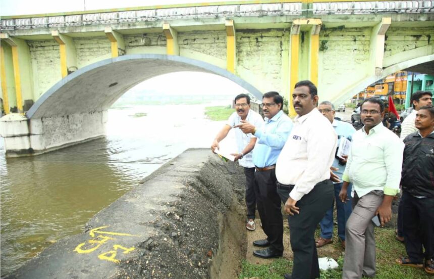 மதுரையில் தொடர்ந்து மூன்று நாட்களாக மழை பெய்து கொண்டு இருக்கிறது இதனை தொடர்ந்து மதுரை மாநகராட்சிக்கு உட்பட்ட வைகை ஆற்றிலிருந்து பனையூர் வாய்க்கால் வழியாக தெப்பக்குளத்திற்கு உபரிநீர் செல்லும் பகுதிகளில் மதுரை மாவட்ட கண்காணிப்பு அலுவலர் கணேஷ், மதுரை மாவட்ட ஆட்சித் தலைவர் மா.சௌ.சங்கீதா, மாநகராட்சி ஆணையாளர் ச.தினேஷ் குமார் ஆகியோர் நேரில் பார்வையிட்டு ஆய்வு மேற்கொண்டனர். மதுரை மாநகராட்சி பகுதிகளில் பெய்த கனமழையின் காரணமாக மாநகர் பல்வேறு பகுதியில் மழைநீர் தேங்கியிருந்தது. சுரங்கப்பாதைகள், சாலைகளில் தேங்கியிருந்த மழைநீர் மாநகராட்சி பணியாளர்களால் உடனுக்குடன் அகற்றப்பட்டு பணிகள் தொடர்ந்து மேற்கொள்ளப்பட்டு வருகிறது. மதுரை மாநகராட்சி வைகை ஆற்றில் செல்லும் உபரிநீர் பனையூர் வாய்க்கால் வழியாக தெப்பக்குளத்திற்கு சென்று அடைகிறது. தெப்பக்குளத்திற்கு வைகை ஆற்று நீர் சென்று அடையும் வழிகளான வைகை தென்கரை ஜீரோ பாயிண்ட், புது ராம்நாட் ரோடு பகுதி வழியாக மாரியம்மன் தெப்பக்குளத்திற்கு சென்று அடையும் பகுதிகளில் மதுரை மாவட்ட கண்காணிப்பு அலுவலர் நேரில் பார்வையிட்டு ஆய்வு மேற்கொண்டார். மேலும் வைகை வடகரை ஆழ்வார்புரம் (தேனி ஆனந்தம் அருகில்) பந்தல்குடி வாய்க்காலில் இருந்து வைகை ஆற்றில் கலக்கும் நீர் வழித்தடத்தையும் மற்றும் கனமழையின் காரணமாக வைகை ஆற்றின் நீர்வரத்து குறித்தும் நேரில் பார்வையிட்டு ஆய்வு மேற்கொண்டார்.
