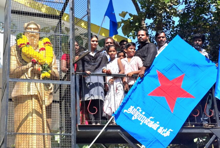 வேலூர் மாவட்டம் தந்தை பெரியாரின் 146-ம் ஆண்டு பிறந்தநாளையொட்டி அண்ணா சாலையில் உள்ள அவரது சிலைக்கு தமிழ்ப் புலிகள் கட்சியின் சார்பில் மத்திய மாவட்ட செயலாளர் பாலன், தலைமையில் 100 க்கும் மேற்பட்டோர் கலந்து கொண்டு ஊர்வலமாக வந்து மாலை அணிவித்து மரியாதை செலுத்தினர்.