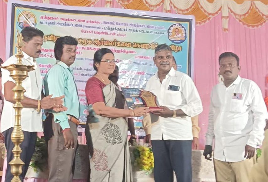 விருது வாங்கிய மேடையில் வைத்து கும்பகோணம் அரசு பள்ளியில் பன்னிரண்டாம் வகுப்பு படித்து வரும் ஏழை மாணவியான ரோஸ்னிக்கு நிதியுதவி வழங்கினார். இவரது இந்த சமூக சேவையை மேடையில் இருந்த அனைவரும் பாராட்டினார்.