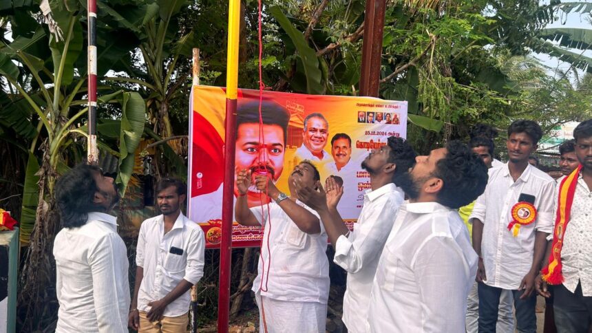 ஒன்றிய தலைவர் விஜய்பாஸ்கர் அவர்களின் ஏற்பாட்டில் அரியலூர் மாவட்டம் ஜெயங்கொண்டம், ஆண்டிமடம் ஒன்றியங்களில் தமிழக வெற்றிக் கழகம் சார்பாக கட்சியின் இளைஞர்கள் மற்றும் தொண்டர்கள் ஒருங்கிணைந்து கொடியேற்றும் விழா எட்டு கிராமங்கள் வடவீக்கம் , கல்லாத்தூர்,அயப்பநாயக்கன் பேட்டை,பாப்பாகுடி,