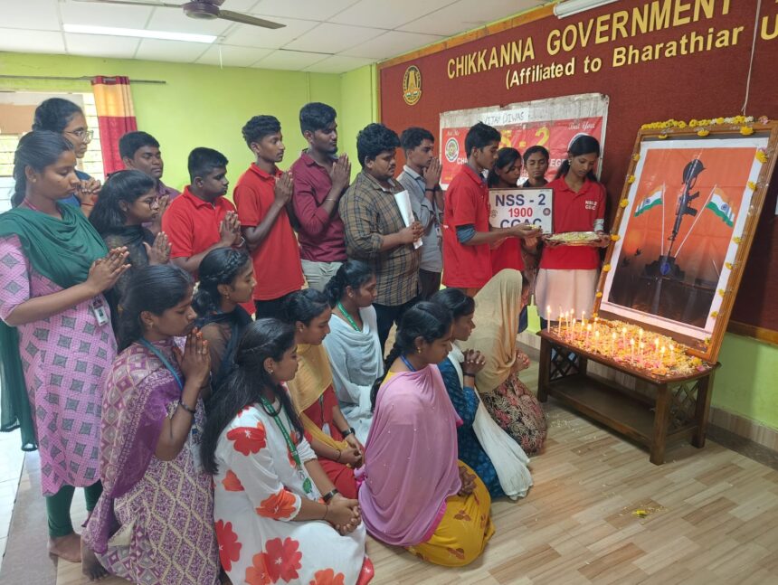 பிறகு, மாணவ செயலர்கள் மதுகார்த்திக், கிருஷ்ணமூர்த்தி, செர்லின், ரேவதி, நவீன்குமார், விஸ்வபாரதி, கவியரசு, திவாகர் ஆகியோர் தலைமையில் மாணவ மாணவிகள் இராணுவ வீரர்களின் புகைப்படத்திற்கு மலர் தூவியும், அஞ்சலி செலுத்தியும் மரியாதை செலுத்தினர்.