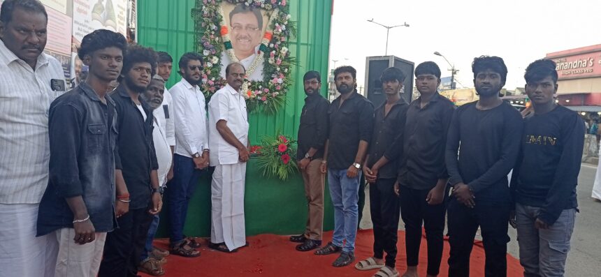 உடுமலை வட்டம் மத்திய பேருந்து நிலையம் அருகில் மறைந்த முன்னாள் மத்திய அமைச்சர் ஈரோடு கிழக்கு சட்டமன்ற தொகுதி சட்டமன்ற உறுப்பினர்.