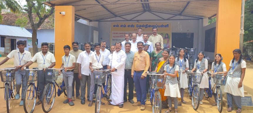 கமரி மாவட்டம் தென்தாமரைகுளம் எல்.எம்.எஸ் மேல்நிலை பள்ளியில் இலவச சைக்கிள் வழங்கும் நிகழ்ச்சி நடைபெற்றது. இந்நிகழ்ச்சிக்கு பள்ளி தாளாளர் கால்வின் தலைமைதாங்கினார். பேரூராட்சி தலைவி கார்த்திகா பிரதாப், பள்ளி தலைமை ஆசிரியை பிரீத்தா ஆகியோர் முன்னிலை வகித்தனர். .நிகழ்ச்சியில் சிறப்பு விருந்தினராக கலந்து கொண்ட அகஸ்தீஸ்வரம் தெற்கு ஒன்றிய திமுக செயலாளர் பாபு 36 மாணவ மாணவிகளுக்கு இலவச சைக்கிள்களை வழங்கினார்.நிகழ்ச்சியில் பள்ளி முன்னாள் தாளாளர் அருள்ஞான பெல், சபை பரிபாலன குழு உறுப்பினர் பெனி ஜோசப், சபைக் குழு உறுப்பினர் அருள், தென் தாமரைக்குளம் பேரூராட்சி துணைத் தலைவர் மல்லிகா,கவுன்சிலர்கள் எட்வின்ராஜ், பூவியூர் காமராஜ்,ஆல்வின் மற்றும் திமுக நிர்வாகி தாமரை பிரதாப், தமிழன் ஜானி, அகஸ்தியலிங்கம் உள்பட பலர் கலந்து கொண்டனர்.