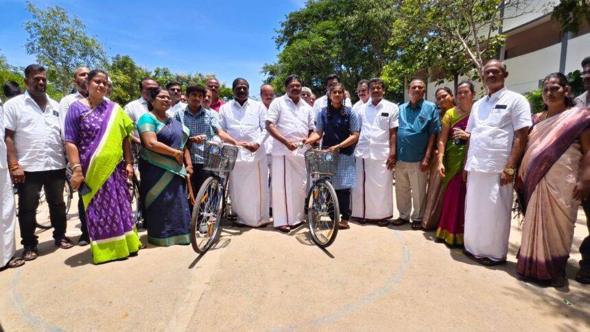 பென்னாகரம் அரசு ஆண்கள் மேல்நிலைப்பள்ளி மற்றும் அரசு பெண்கள் மேல்நிலைப் பள்ளியில் 11 ,12 ஆம் வகுப்பு மாணவ மாணவிகளுக்கு இலவச சைக்கிள்கள் வழங்கும் விழா நடைபெற்றது.விழாவிற்கு முதன்மை கல்வி அலுவலர் ஜோதி சந்திரா தலைமை தாங்கினார். மாவட்ட கல்வி அலுவலர் விஜயகுமார்,பள்ளி துணை ஆய்வாளர் பொன்னுசாமி பெற்றோர் ஆசிரியர் கழக தலைவர், செந்தில் ஆகியோர் முன்னிலை வகித்தனர். நிகழ்ச்சியில் பென்னாகரம் சட்டமன்ற உறுப்பினர் ஜி.கே மணி எம்.எல்.ஏ தருமபுரி நாடாளுமன்ற உறுப்பினர் ஆ.மணி எம்.பி ஆகியோர் கலந்து கொண்டு 373மாணவ மாணவிகளுக்கு இலவச சைக்கிள்களை வழங்கிப் பேசினர்.விழாவில் பேரூராட்சி தலைவர் வீரமணி, ஒன்றிய குழு தலைவர் கவிதா ராமகிருஷ்ணன் ஒன்றிய செயலாளர்கள் மடம் முருகேசன், செல்வராஜ் மாவட்ட துணை செயலாளர் ரேணுகாதேவி ,பள்ளி தலைமை ஆசிரியர்கள் லோகநாதன், விஜயலட்சுமி தமிழாசிரியர் முனியப்பன் உள்ளிட்ட ஆசிரியர்கள் மாணவர்கள் கலந்து கொண்டனர்