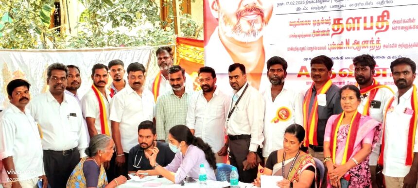 வேலூர் மாவட்டம் பார்வை இழப்பு தடுப்பு சங்கம், வேலூர் தமிழக வெற்றிக் கழகம் மற்றும் சி.எம்.சி. கண் மருத்துவமனை இணைந்து நடத்திய இலவச கண் பரிசோதனை முகாம் வஞ்சூர் பழைய ரைஸ் மில் அருகில் நடைபெற்றது இதில் தமிழக வெற்றிக் கழகம் வேலூர் கிழக்கு மாவட்டம் செயலாளர் நவீன் நிகழ்ச்சியில் கலந்து கொண்டு கண் பரிசோதனை முகாமை துவக்கி வைத்தார். உடன் காட்பாடி சட்டமன்ற தொகுதி செந்தில்குமார் ,கோவிந்தன், லதா, கோபாலகிருஷ்ணன் ,சார்லஸ், ஊராட்சி நிர்வாகிகள் விஜய் ,சரவணன், மகாலிங்கம் ,ஜெய்கணேஷ் ,பிரபு, மற்றும் மருத்துவர்கள், செவிலியர்கள், பொதுமக்கள் ,பலர் கலந்து கொண்டனர்.