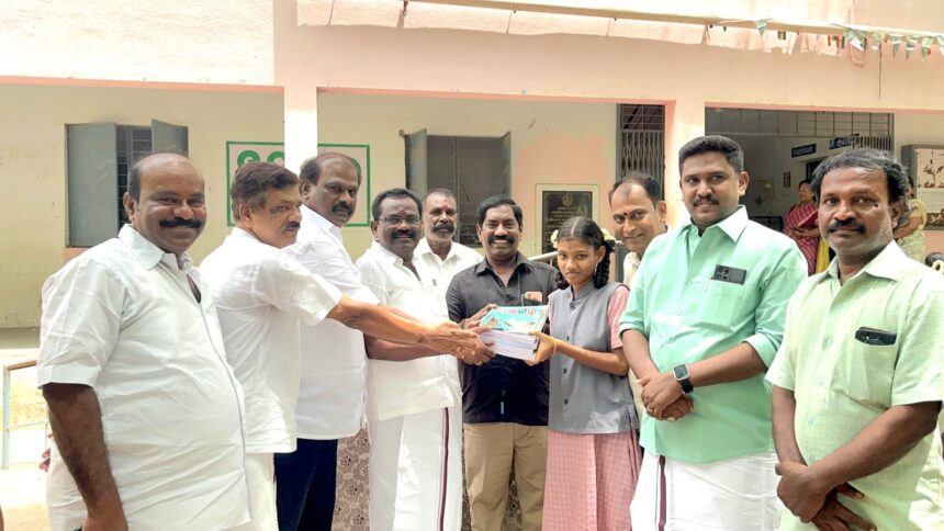 பரமக்குடி,ஜூன்.3 : பரமக்குடியில் தமிழக அரசு சார்பாக அரசு பள்ளியில் படிக்கும் மாணவ மாணவிகளுக்கு இலவச நோட்டுப் புத்தகங்களை எம்எல்ஏ முருகேசன் வழங்கினார்.