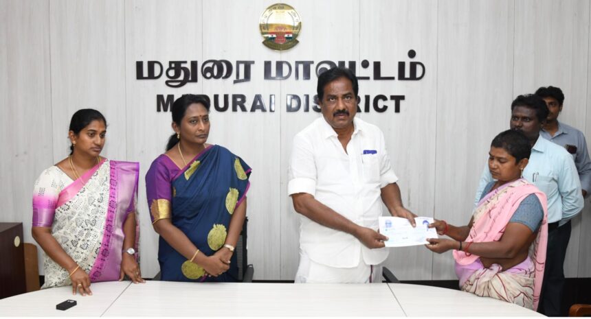 மதுரை மாவட்டத்தில் நடைபெற்ற ஜல்லிகட்டு போட்டிகளில் காளை முட்டி உயிரிழந்தவர்களின் குடும்பத்தாருக்கு முதலமைச்சரின் பொது நிவாரண நிதியிலிருந்து தலா 3 லட்சத்திற்கான காசோலைகளை மதுரை மாவட்ட ஆட்சியர் அலுவலகத்தில் வணிகவரி மற்றும் பதிவுத்துறை அமைச்சர் பி.மூர்த்தி வழங்கினார். மதுரை மாவட்ட ஆட்சித்தலைவர் மா.சௌ.சங்கீதா, மதுரை வருவாய் கோட்டாட்சியர் ஷாலினி ஆகியோர் உடன் உள்ளனர்.