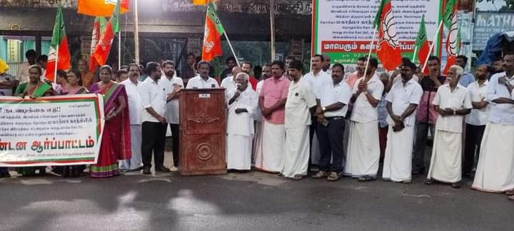 நடவடிக்கை எடுக்க விடாமல் துணைபோகும் விளவங்கோடு சட்டமன்றத் தொகுதி உறுப்பினர் மற்றும் காங்கிரஸ் நிர்வாகிகள் மீதும் கடுமையான கண்டனங்கள் தெரிவித்தும், நேற்று மாலை 4 மணிக்கு கழுவன்திட்டை சந்திப்பில் பாரதிய ஜனதா கட்சி சார்பில் கண்டன ஆர்ப்பாட்டம் நடைபெற்றது. மேல்புறம் மேற்கு ஒன்றிய தலைவர் சேகர் தலைமை வகித்தார்.