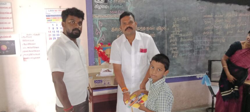 கல்விக்கண் திறந்த காமராஜர் பிறந்த நாள் தினத்தை முன்னிட்டு அனுப்பர்பாளையம் பகுதியில் அவரது திருவுருவ சிலைக்கு மாலை அணிவித்து மரியாதை செலுத்திய பின்பு காசிபாளையம் பகுதியில் உள்ள ஊராட்சி ஒன்றிய தொடக்கப்பள்ளியில் மாணவ மாணவிகளுக்கு திருப்பூர் மாவட்ட தலைவர் வீரக்குடி ச. காளிதாஸ் அவர்களின் தலைமையில் நலத்திட்ட உதவிகள் வழங்கப்பட்டது. இந்து மக்கள் எழுச்சி பேரவை நிறுவனத் தலைவர்