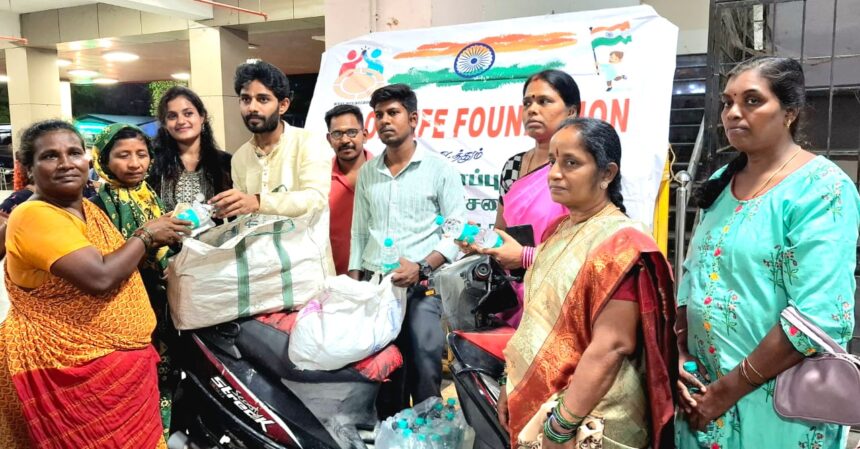 வேலூர் மாவட்டம் வேலூர் புதிய பேருந்து நிலையம் வளாகத்தில் குட் லைஃப் பவுண்டேஷன் தலைவர் விக்னேஸ்வரன் பிறந்த நாளை முன்னிட்டு ஏழை எளிய மக்களுக்கு இரவு உணவினை குட் லைஃப் பவுண்டேஷன் குழுமத்தினர்கள் சார்பில் வழங்கினர். உடன் செயலாளர் சூர்யா, மோகன், வித்யாலட்சுமி, மகாலட்சுமி ,ராஜலட்சுமி, மலர்கொடி, சீதா, உள்ளிட்டோர் பலர் கலந்து கொண்டனர்.