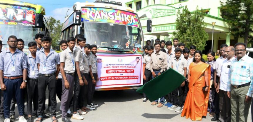இதன்தொடர்ச்சியாக, கிருஷ்ணகிரி மாவட்டத்தில் ஓசூர் மற்றும் தேன்கனிக்கோட்டை ஐடிஐ மற்றும் கிருஷ்ணகிரி, பர்கூர், ஊத்தங்கரை மற்றும் கெலமங்கலம் அரசு பாலிடெக்னிக் கல்லூரிகளில் இறுதி ஆண்டு பயிலும் 600 மாணவர்களுக்கு தொழில் நிறுவனங்களை பார்வையிட ஆணையிடப்பட்டுள்ளது. அதனடிப்படையில் முதற்கட்டமாக இன்று, கிருஷ்ணகிரி, மாவட்ட தொழில் மையம் மூலமாக, பர்கூர் அரசு பல்தொழிற்நுட்ப கல்லூரியில் இறுதி ஆண்டு பயிலும் 50 மாணவர்களை போலுப்பள்ளியில் செயல்பட்டு வரும் பேட்டரி தயாரிக்கும் தொழிற்சாலை மற்றும் ஒசூரில் செயல்பட்டு வரும் தானியங்கி உதிரிபாகம் தயாரிக்கும் தொழிற்சாலை ஆகிய தொழில் நிறுவனங்களை பார்வையிடவும், பயிற்சி மேற்கொள்ளவும் அழைத்து செல்லப்பட்டுள்ளது என மாவட்ட ஆட்சித்தலைவர் .கே.எம்.சரயு ., அவர்கள் தெரிவித்தார்.
