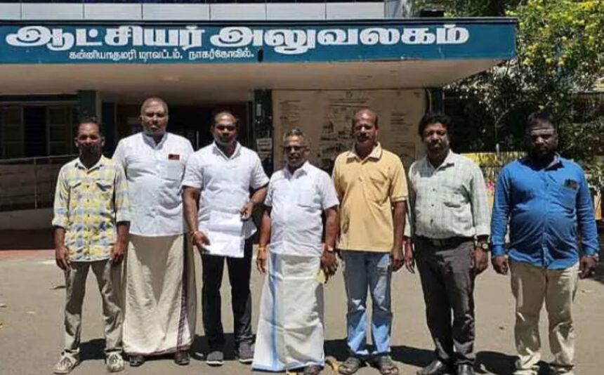 இது தொடா்பாக விஸ்வ இந்து பரிஷத் மாவட்டத் தலைவா் காா்த்திக், மாநகர தலைவா் நாஞ்சில்ராஜா, பொதுச் செயலா் காா்கில் மணிகண்டன், செயலா்கள் ரமேஷ், காசிவிஸ்வநாதன் உள்ளிட்டோா் கன்னியாகுமரி மாவட்ட ஆட்சியா் அலுவலகம் மற்றும் மாவட்ட காவல் கண்காணிப்பாளா் அலுவலகத்தில் சனிக்கிழமை அளித்தள்ள மனுவில் கூறியிருப்பதாவது: