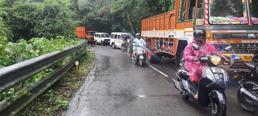 தேனி மாவட்டம் இரு மாநிலத்தை இணைக்கக்கூடிய வழித்தடமாக விளங்கும் கம்பமெட்டு மலைச் சாலையில் நேற்று பெய்த கனமழையின் காரணமாக மரம் சாய்ந்து சுமார் 2 மணி நேரம் போக்குவரத்து பாதிக்கப்பட்டது.தகவல் அறிந்து வந்த துறை சார்ந்த அதிகாரிகள் மரத்தை அகற்றி போக்குவரத்தை சீர் செய்தனர்.