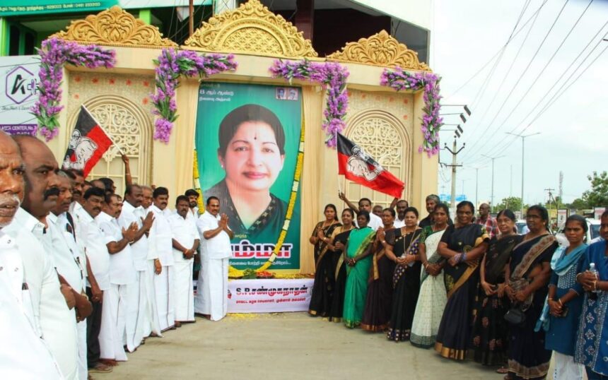 மறைந்த தமிழக முதல்வரும் அதிமுக முன்னாள் பொதுச் செயலாளருமான புரட்சித்தலைவி அம்மா அவர்களின் 8வது ஆண்டு நினைவு தினத்தை முன்னிட்டு அவரது திருவுருவப்படத்திற்கு அதிமுகவினர் மரியாதை செலுத்தி வழிபட வேண்டும் என அதிமுக பொதுச் செயலாளரும் முன்னாள் முதலமைச்சருமான எடப்பாடி பழனிசாமி உத்தரவிட்டிருந்தார்.