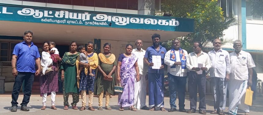 இப்படியே அமைக்கப்பட்டு வரும் டவருக்கு மாவட்ட நிர்வாகத்திடம் இருந்து எந்த ஒரு அனுமதி பெறாமலும், மாநகராட்சியில் இருந்து அனுமதி பெறாமலும், தகுதி இல்லாத கட்டிடத்தின் மேல்மாடியில் சட்டத்திற்கு புறம்பாக தனியார் அலைக்கற்றை நிறுவனம் அமைத்து வரும் உயர்கோபுர அமைக்கும் பணிகளை தடுத்து நிறுத்தி நடவடிக்கை எடுக்க தாங்களை பொதுமக்கள் சார்பாக கேட்டுக் கொள்கிறேன். இவ்வாறு அந்த மனுவில் கூறப்பட்டுள்ளது. உடன் கோட்டார் இந்து அருந்ததியார் சமுதாய ஊர் தலைவர். சந்திரன் ஜெய்பீம் எழுச்சி இயக்க கூட்டமைப்பு தோழர்கள் ஆதித்தமிழர்கட்சி மாவட்ட தலைவர் தோழர் அண்ணாதுரை.தோழர் கிருஷ்ணமூர்த்தி சி.முருகன். ச.குமாரவேல் தோழர் பிரதாப் பகுஜன் சாமஜ் கட்சி மாவட்டதலைவர் சுதர்மண் மகளிர் அணி ராஜேஸ்வரி. பவானி.வளர்மதி. பேபி.ராஜேஸ்வரி மற்றும் ஊர்மக்கள் கலந்துகொண்டனர்.
