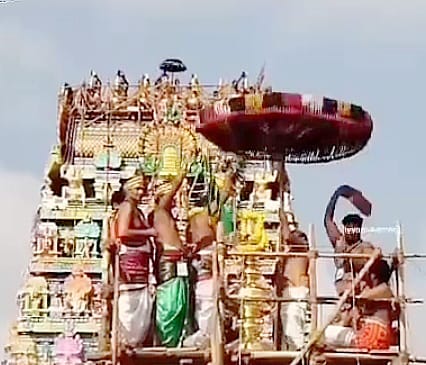 யாக சாலையில் இருந்து புனித நீர் எடுத்து செல்லப்பட்டு கோவிலி ல் கோபுர விமான கலசங்களில் ஊற்றப்பட்டு, குடமுழுக்கு நடந்தது அதைத் தொடர்ந்து மூலவருக்கு மகா அபிஷேகமும், இரவு சாமி வீதி உலாவும் நடந்தது.