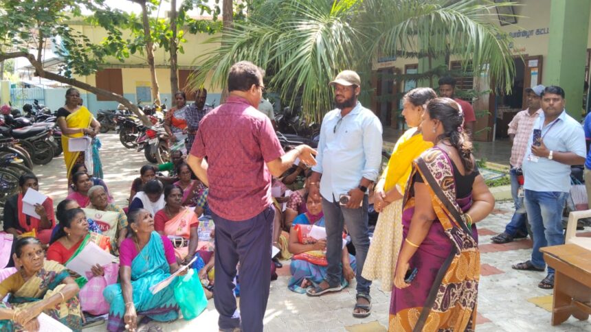 அழகப்பபுரம் அந்தோணியார் பள்ளியில் மாவட்ட ஆட்சியாளரின் சிறப்பு முகாம் நடந்தது. முகாமில் முதியோர் உதவிதொகை,விதவை,மகளிர்,மாற்றுதிரனாளிகள் உதவிதொகை,இலவச வீட்டுமனைபட்டா என அணைத்து துறைக்குமான அதிகாரிகள் கலந்துகொண்டு மனுக்களை பெற்றனர்., இந்நிலையில் முகாம் தொடங்கியவுடன் விசிக குமரி மாவட்ட மாணவரணி துணை அமைப்பாளரும் சமூக சேவகருமான இந்திரா நகர் முத்துக்குமார் தலைமையில் புதுக்குளம் அடுக்குமாடி குடியிருப்பில் பணம் கட்டி பாதிக்கப்பட்ட 40க்கும் மேற்பட்ட பெண்கள் தரையில் அமர்ந்து தர்ணா போராட்டம் நடத்தினர்.