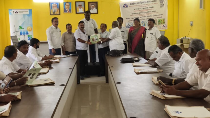 கிராம பஞ்சாயத்து அளவில் பொருட்கள் வாங்கும் பொழுது அரசு இ-சந்தையில் ISI தரச்சான்றிதழ் மற்றும் கட்டாய சான்றிதழ் ஆகியவை உள்ளதா என்பதை பார்த்து பொருட்கள் வாங்க வேண்டும், தற்போது 723 பொருட்களுக்கு அரசு தரப்பில் BIS கட்டாய தரச்சான்றிதழ் தேவை என்று மத்திய அரசு அறிவித்துள்ளது, வீட்டு உபயோக எரிவாயு சிலிண்டர், தலைகவசம், சிமெண்ட, குக்கர், விளையாட்டு பொம்மைகள், காலணிகள், வாகனங்களின் டயர்கள், பால் பவுடர் போன்ற பொருட்களுக்கு கட்டாய தரச்சான்றிதழ் அறிவிக்கப்பட்டுள்ளது. தரக்குறைபாடு உள்ள பொருட்கள் பற்றி புகார்களை BIS CARE செயலின் உதவியோடு எளிதில் பதிவு செய்வது குறித்த பயிற்சி அளிக்கப்பட்டது.