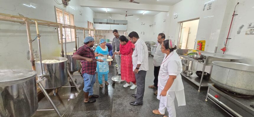 ஆய்வு செய்தனர். அத்துடன் உணவு தயாரிப்புக்கூடம், மூலப்பொருட்கள், இருப்பு அறை சரியாக பராமரிக்கப்படுகிறதா?. கொள்முதல் செய்யப்பட்ட உணவுபொருட்களில் உள்ள லேபிள் விவரங்கள், உணவு பாதுகாப்பு மற்றும் தரநிர் ணய சட்டத்தின் வழிகாட்டு தல்படி உள்ளதா? என்றும், தரமான பொருட்களை கொண்டு, சுகாதாரமாக உணவுதயாரித்து நோயாளிக ளுக்கு வழங்கப்படுகிறதா?