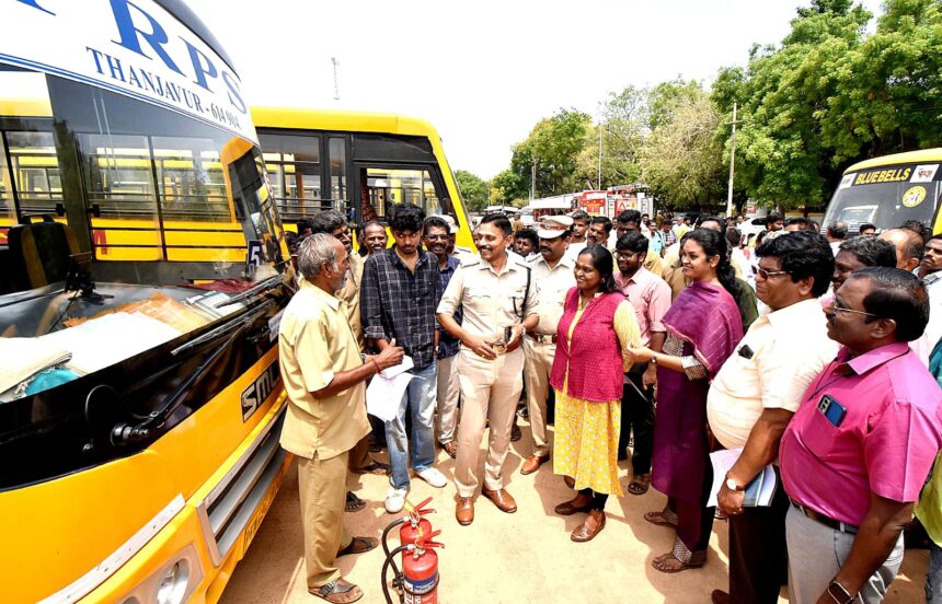 தஞ்சாவூர் மாவட்டத்தில் உள்ள தஞ்சாவூர், பட்டுக்கோட்டை கும்பகோணம் ஆகிய 702 பள்ளி வாகனங்கள் ஆய்வு செய்யப்பட்டது 35 வாகனங்களின் தகுதி சான்று ரத்து செய்யப்பட்டது.