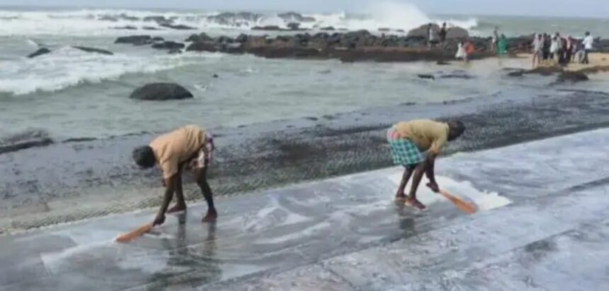 இதனால் முக்கடல் சங்கமம் கடற்கரை பகுதியில் கட்டப்பட்டிருந்த படித்துறையில் படித்திருந்த வழுக்கும் தன்மை கொண்ட பாசிகளையும், அங்கு குவிந்திருந்த மணல்களையும் பேரூராட்சி துப்புரவுப் பணியாளர்கள் அகற்றும் பணியில் நேற்று ஈடுபட்டனர். கன்னியாகுமரி சிறப்பு நிலை பேரூராட்சி சுகாதார அதிகாரி சுகாதார மேற்பார்வையாளர் ஆகியோர் முன்னிலையில் துப்புரவுப் பணியாளர்கள் இந்த பணியை தொடர்ந்து மேற்கொண்டு வருகின்றனர். இதற்கு சுற்றுலா ஆர்வலர்கள் பாராட்டு தெரிவித்தனர்.