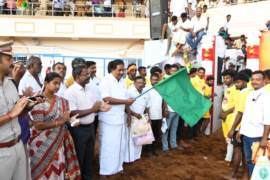 மதுரை அலங்காநல்லுார் கீழக்கரை கலைஞர் நூற்றாண்டு ஏறுதழுவுதல் அரங்கத்தில் தொடர்ந்து 2 நாட்கள் நடைபெறும் ஜல்லிக்கட்டு போட்டி நடைபெற்றது. வணிகவரி மற்றும் பதிவுத்துறை அமைச்சர் பி மூர்த்தி காலை 7:00 மணியளவில் கொடி அசைத்து தொடங்கி வைத்தார்.
