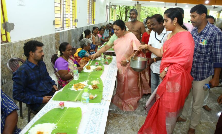 மதுரை மாநகராட்சி இராஜாஜி பூங்கா அருகில் உள்ள அருள்மிகு பூங்கா முருகன் திருக்கோவிலில் நடைபெற்ற கந்த சஷ்டி விழாவில் நடைபெற்ற அன்னதானத்தை மேயர் இந்திராணி பொன்வசந்த் தொடங்கி வைத்தார் அருகில் கோவில் அலுவலர்கள் உடன் உள்ளனர்.
