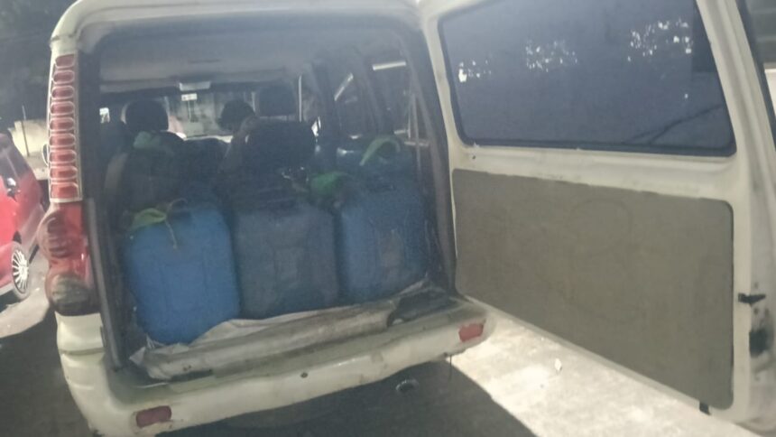 இதையடுத்து வாகனத்தை துரத்தி சென்று கல்லுக்கூட்டம் பகுதியில் வைத்து மடக்கிப்பிடித்து சோதனை செய்தபோது அதில் சுமார் 1000 லிட்டர் படகுகளுக்கு வழங்கும் வெள்ளை நிற மண்ணெண்ணெய் இருந்தது கண்டுபிடிக்கப்பட்டு மண்ணெண்ணெய் கைப்பற்றப்பட்டது. வாகன ஓட்டுனர் தப்பிவிட்டார். தொடர்ந்து மண்ணெண்ணெய் இனயத்தில் உள்ள குடோனிலும், வாகனம் தாலுகா அலுவலகத்தில் ஒப்படைக்கப்பட்டுள்ளது.